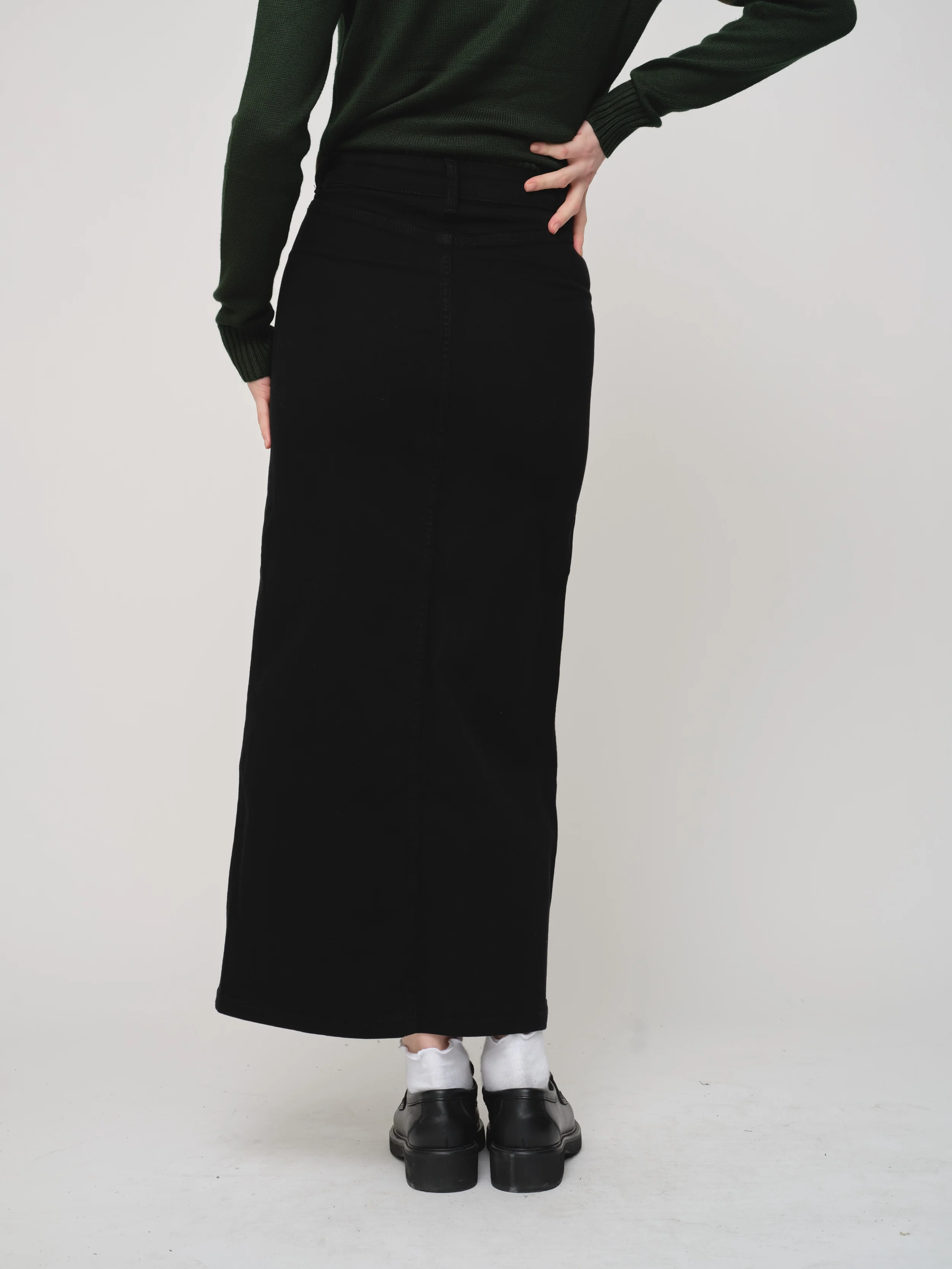 Elevate your everyday wardrobe with our Front Pocket A-Line Denim Skirt, designed with a flattering A-line silhouette and no slit for full coverage and modesty. Crafted from super-stretchy denim, this skirt offers the ultimate comfort while maintaining its chic structure. Functional front pockets add a practical yet stylish touch, making it a versatile piece you’ll love to wear from casual outings to polished occasions.