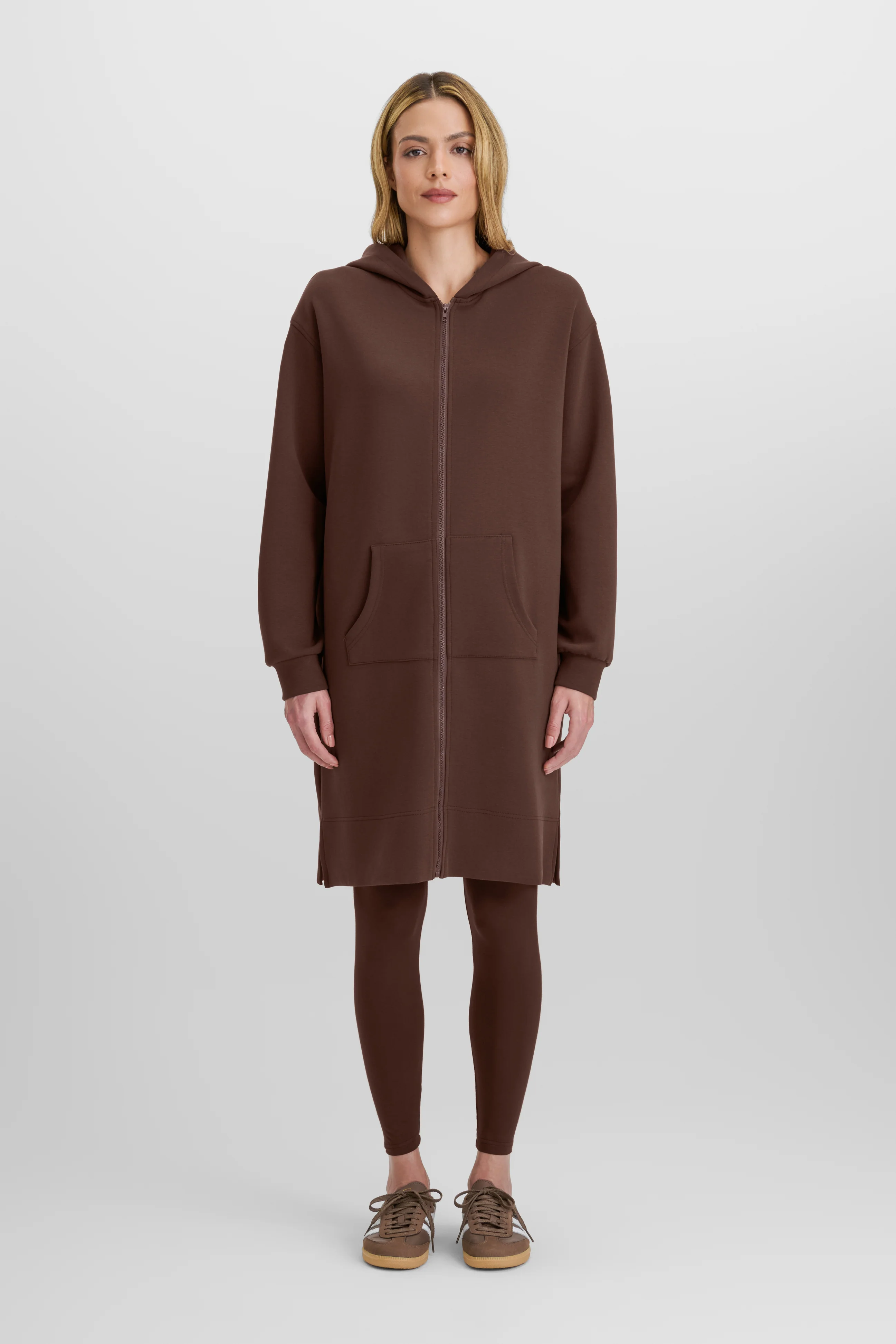 An ultra-comfy hoodie sweatshirt dress made for lounging and travel. Soft, relaxed, and effortlessly polished—your go-to for cozy days on the move.