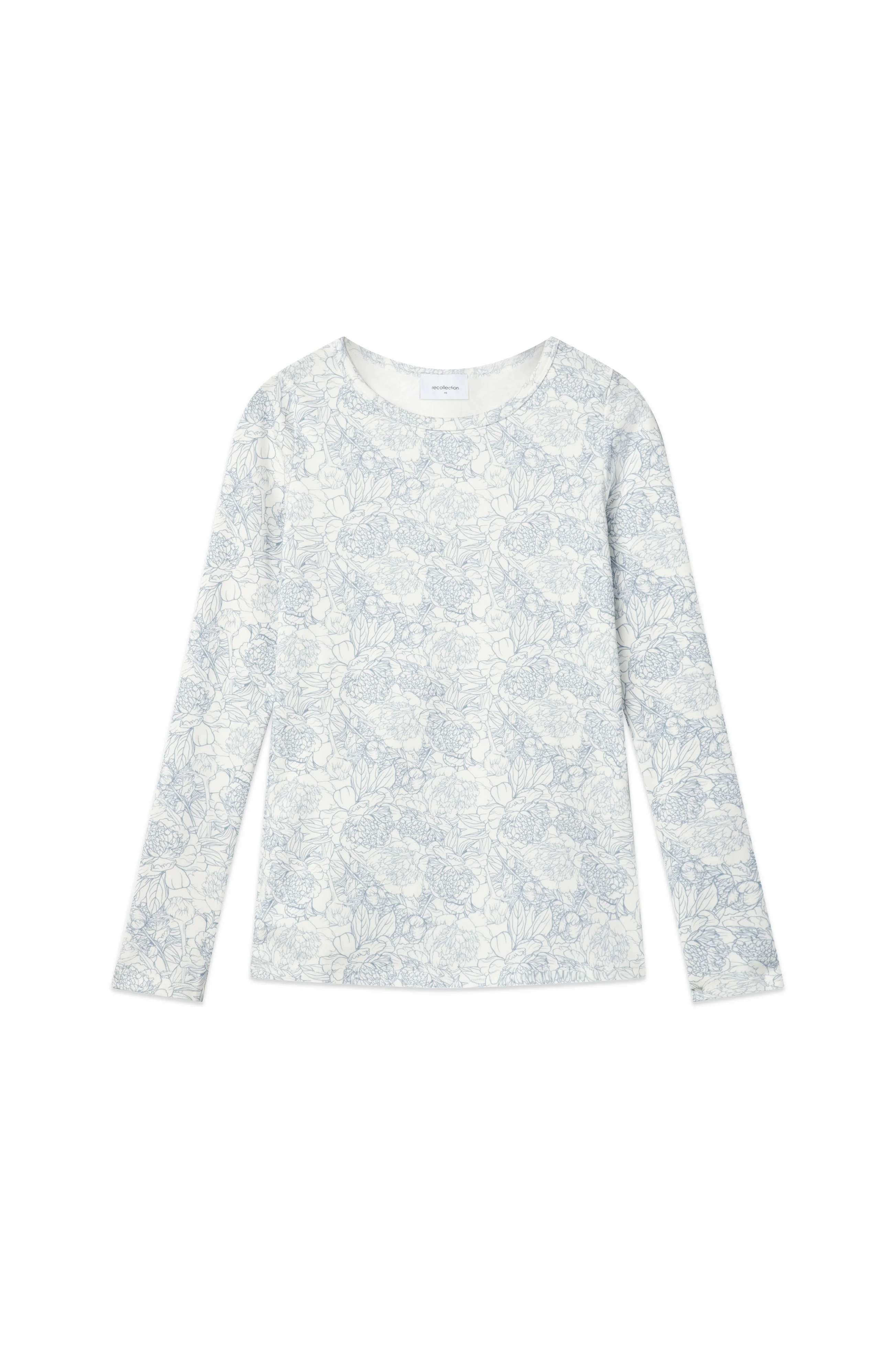 The Floral Print Tee features a chic two-tone design with an airy, feminine feel. Cut in a flattering fitted silhouette, it’s the perfect balance of softness and structure for everyday elegance.