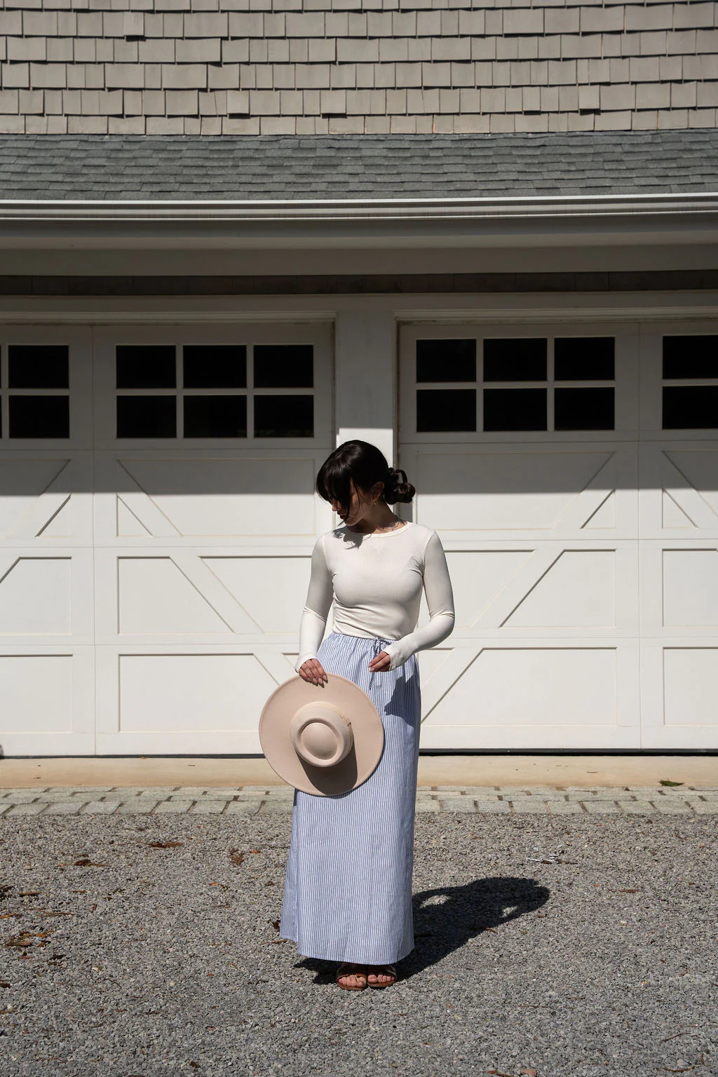 Breezy and timeless, the Pinstripe Midi Skirt features a flattering A-line silhouette and an adjustable drawstring waist for the perfect fit. Classic pinstripes lend a nautical touch, making it an easy go-to for warm days. Pair it with your favorite tee or blouse for an effortlessly polished summer look.